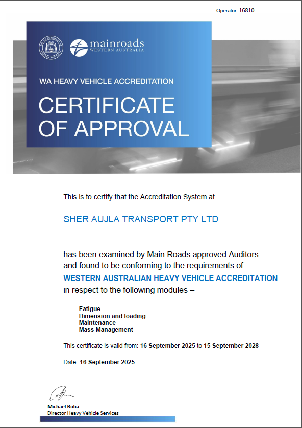 Safety is of the topmost important part of our transport business. We are commited to creating a safe and compliant working environment for our team, our customers, and the community. We are comprehensively invested in safety to ensure we are always compliant. We prove our commitment to safety and compliance through.